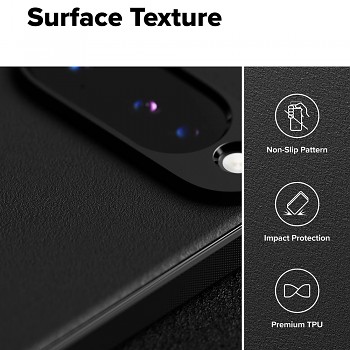 Pouzdro Ringke Onyx pro Google Pixel 10 je vyrobeno z prémiového TPU materiálu, který zajišťuje vynikající flexibilitu a odolnost proti nárazům. Jeho černá barva dodává telefonu sofistikovaný a nadčasový vzhled. Zadní strana pouzdra se pyšní jemnou, protiskluzovou texturou, která připomíná broušený povrch a výrazně zlepšuje úchop. Boky pouzdra jsou opatřeny výraznější, jemně zrnitou texturou, která zabraňuje vyklouznutí telefonu z ruky.