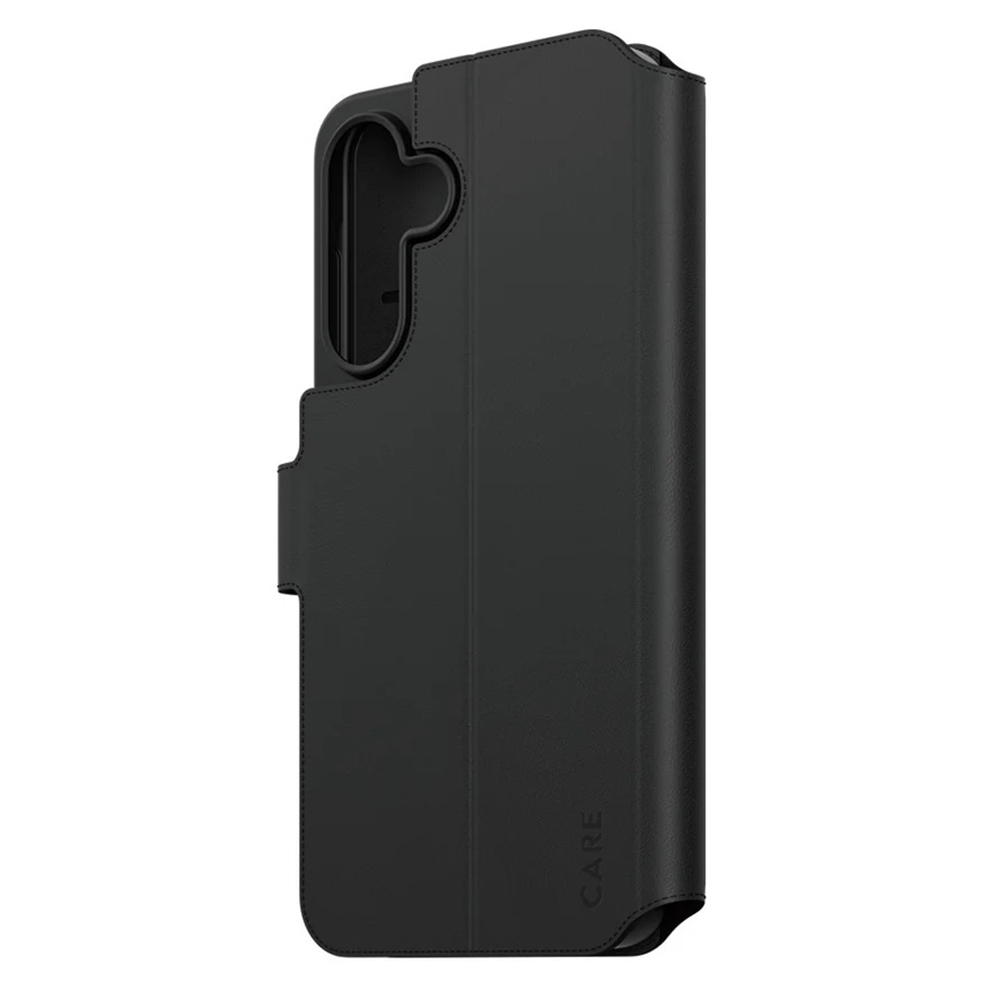 Pouzdro se pyšní minimalistickým a sofistikovaným designem v elegantní černé barvě. Je vyrobeno z luxusní veganské kůže, která je příjemná na dotek a dodává vašemu telefonu punc exkluzivity. Jedná se o praktické folio pouzdro, které chrání jak záda, tak displej telefonu. Precizní výřezy zajišťují snadný přístup ke všem portům a tlačítkům, zatímco speciální design kolem fotoaparátu poskytuje zvýšenou ochranu objektivů. Integrovaná opěrka (kickstand) umožňuje pohodlné sledování videí nebo videohovory v horizontální poloze. Navíc, díky provedení "Wallet Case", nabízí pouzdro i praktické kapsy na karty, takže můžete mít vše důležité vždy po ruce.