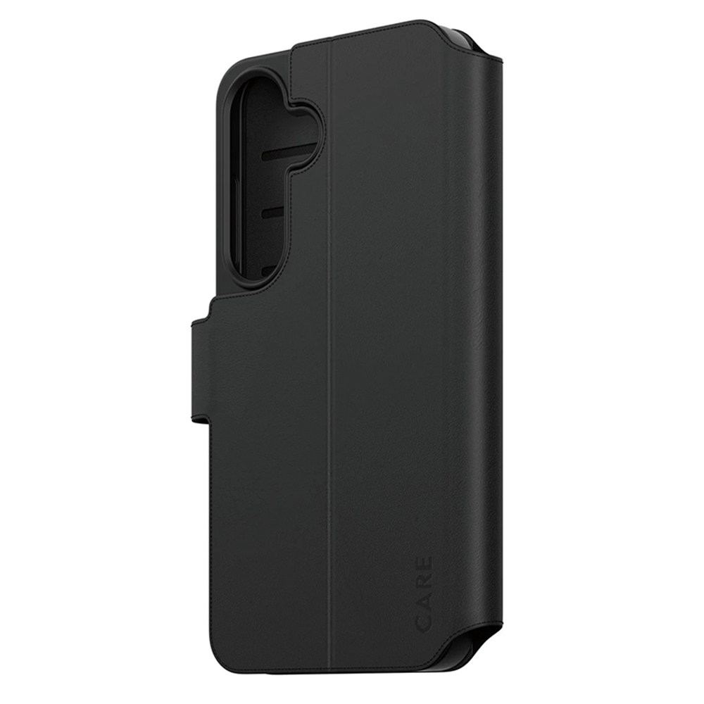 Pouzdro PanzerGlass® CARE se pyšní minimalistickým a elegantním designem v nadčasové černé barvě. Je vyrobeno z luxusní veganské kůže, která je příjemná na dotek a dodává pouzdru prémiový vzhled a pocit. Jeho folio provedení chrání telefon ze všech stran, včetně displeje, a zajišťuje tak komplexní ochranu před každodenními nástrahami. Integrovaná opěrka (kickstand) umožňuje pohodlné sledování obsahu v horizontální poloze, což je ideální pro sledování videí nebo videohovory.