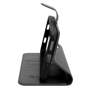 Design: Elegantní a na dotek příjemná černá imitace kůže s precizním prošíváním rohů a vnitřní vaničkou pevně svírající telefon.
