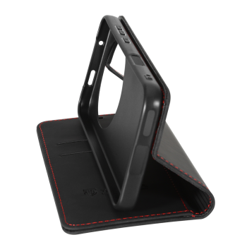 Vnitřní část tvoří vanička z pevného černého plastu, která přesně kopíruje křivky telefonu. Na pravé spodní straně této vaničky se nachází praktický výřez pro provlečení poutka. Přední flip je z vnitřní strany opatřen dvěma přihrádkami pro platební karty nebo vizitky. Celé pouzdro se zavírá pomocí skrytého magnetického mechanismu, který zajišťuje, že se obal samovolně neotevře ani při pádu.