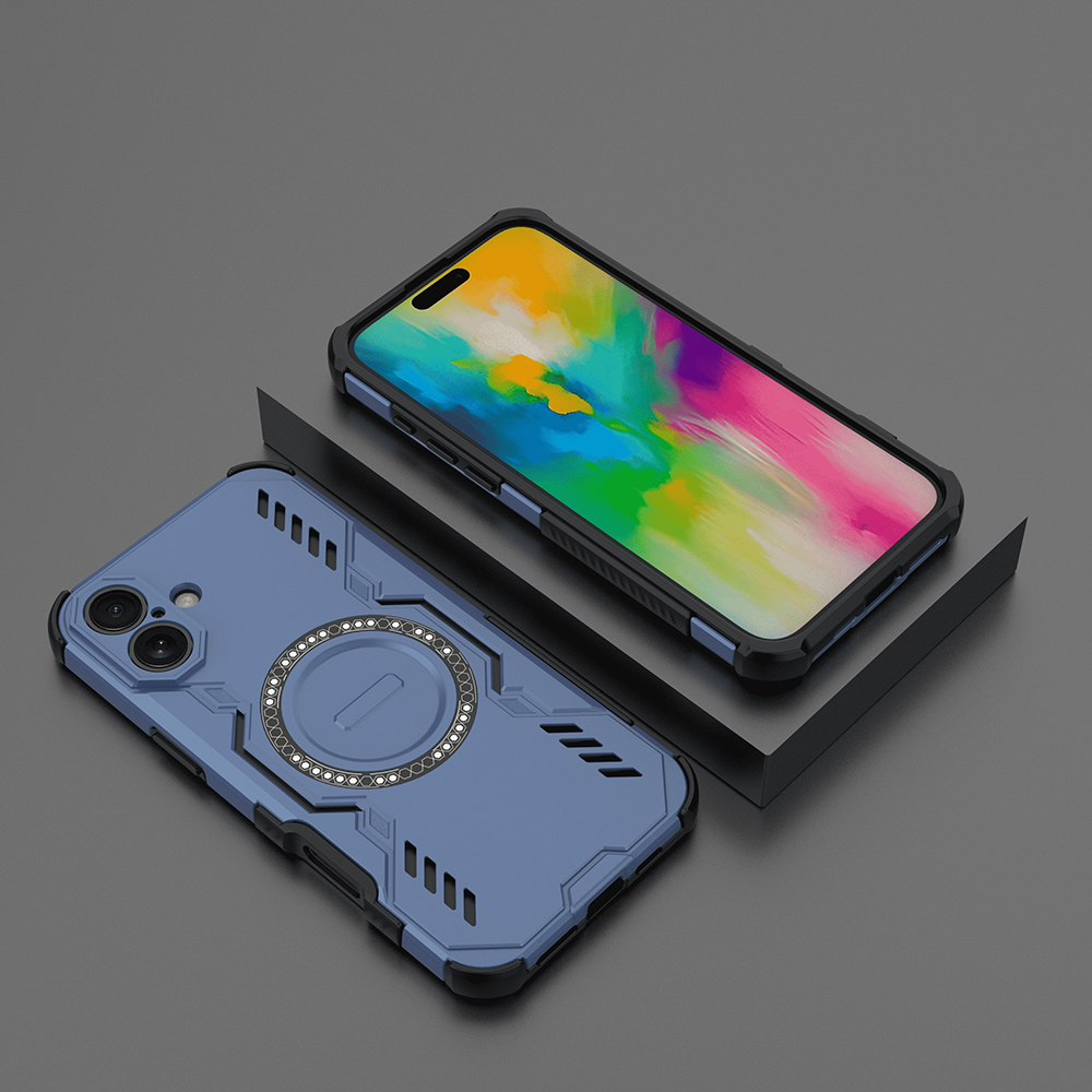 Pouzdro Techsuit ArmorMag se pyšní odolným a moderním designem. Jeho modré provedení je doplněno černými akcenty, které podtrhují jeho taktický vzhled. Zesílené rohy a robustní konstrukce zajišťují vysokou odolnost proti nárazům a pádům. Na zadní straně pouzdra dominuje integrovaný magnetický kroužek, který je kompatibilní s technologií MagSafe a umožňuje snadné a bezpečné připevnění příslušenství. Tento kroužek je navíc elegantně orámován dekorativním vzorem, který dodává pouzdru osobitý šmrnc. Přesné výřezy pro fotoaparáty, konektory a reproduktory zaručují plnou funkčnost telefonu, zatímco tlačítka jsou chráněna a zároveň si zachovávají jistý a příjemný stisk.