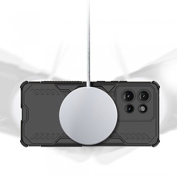 Pouzdro Techsuit ArmorMag se vyznačuje odolným a moderním designem. Jeho modré provedení s černými akcenty na rozích a bocích dodává telefonu dynamický a sportovní vzhled. Zesílené rohy a robustní konstrukce jsou navrženy tak, aby absorbovaly nárazy a chránily telefon před pády a poškrábáním. Na zadní straně pouzdra naleznete integrovaný magnetický kroužek, který zajišťuje kompatibilitu s MagSafe příslušenstvím nebo usnadňuje připevnění k magnetickým držákům. Texturované boky pouzdra zaručují pevný a jistý úchop, čímž minimalizují riziko vyklouznutí telefonu z ruky. Přesné výřezy pro fotoaparáty, konektory a reproduktory zajišťují plnou funkčnost zařízení, zatímco tlačítka si zachovávají příjemnou odezvu.