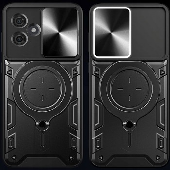Jedním z klíčových prvků je integrovaný posuvný kryt fotoaparátu, který chrání objektivy před poškrábáním a nečistotami, když je nepoužíváte. Na zadní straně pouzdra naleznete také praktický kroužek, který slouží jako stojánek pro pohodlné sledování obsahu nebo jako bezpečný úchyt pro lepší manipulaci s telefonem. Přesné výřezy pro konektory, mikrofony, reproduktory a fotoaparáty zajišťují plnou funkčnost telefonu bez nutnosti pouzdro sundávat. Tlačítka mají jistý stisk a přístup k nabíjecímu portu je vždy bezproblémový.