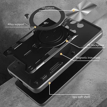 Pouzdro Techsuit CamGuard Pro se pyšní robustním a zároveň elegantním designem. Kombinace růžového zlata a černých akcentů dodává vašemu telefonu sofistikovaný vzhled. Klíčovým prvkem je integrovaná posuvná krytka fotoaparátu s texturou broušeného kovu v barvě růžového zlata, která efektivně chrání objektivy před poškrábáním a nečistotami, a zároveň zajišťuje vaše soukromí. Na zadní straně pouzdra naleznete také otočný prstenec, který slouží jako praktický stojánek pro pohodlné sledování obsahu nebo jako bezpečný úchyt pro stabilnější držení telefonu. Pouzdro je vyrobeno z odolných materiálů, které poskytují vynikající ochranu proti pádům, nárazům a každodennímu opotřebení, s precizními výřezy pro všechny porty a tlačítka.