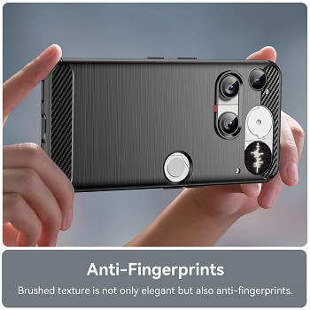 Toto pouzdro se pyšní moderním a robustním designem. Zadní strana je opatřena elegantní texturou imitující broušený kov, která dodává pouzdru sofistikovaný vzhled a zároveň zlepšuje úchop. Horní a spodní část zadní strany, stejně jako oblast kolem modulu fotoaparátu, zdobí dynamický vzor karbonových vláken, který podtrhuje sportovní a technologický charakter pouzdra. Díky kombinaci silikonu a karbonových prvků je pouzdro nejen odolné, ale i příjemné na dotek. Přesné výřezy zajišťují bezproblémový přístup ke všem konektorům, mikrofonům, reproduktorům a fotoaparátům, zatímco tlačítka si zachovávají jistý a komfortní stisk.