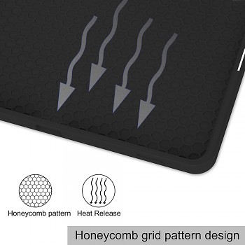 Zadní část pouzdra je vybavena precizním výřezem pro kameru a je vyrobena z odolného materiálu, který efektivně absorbuje nárazy a chrání tablet před poškozením při pádech. Vnitřní strana pouzdra disponuje speciální voštinovou mřížkou, která zajišťuje optimální odvod tepla a zároveň zvyšuje odolnost proti otřesům. Zesílené rohy poskytují dodatečnou ochranu proti nárazům.