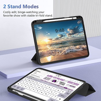 Pouzdro se pyšní minimalistickým a elegantním černým designem, který skvěle doplňuje vzhled vašeho zařízení. Jeho hlavní předností je inovativní tri-fold přední kryt, který umožňuje nastavení tabletu do dvou různých poloh stojánku. Ať už sledujete filmy, prezentace, nebo píšete, vždy najdete ideální úhel pro maximální pohodlí.