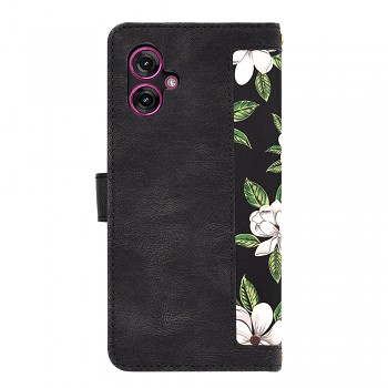 Pouzdro Techsuit FlipCraft se pyšní sofistikovaným designem s motivem „Květiny úsvitu“. Základem je elegantní černá barva s jemnou texturou imitující kůži, která dodává pouzdru luxusní vzhled. Přední strana je zdobena nádherným vzorem bílých květů připomínajících magnolie s detailními zelenými listy, které se rozprostírají na černém pozadí. Tento květinový motiv se opakuje i na vnitřní straně flipu, kde jsou praktické přihrádky na karty a bankovky. Pouzdro je vybaveno magnetickým zavíráním pro bezpečné uchycení a lze jej snadno složit do praktického stojánku pro pohodlné sledování obsahu. Součástí balení je také odnímatelné poutko na zápěstí pro ještě větší bezpečnost a komfort při nošení. Přesné výřezy zajišťují plný přístup ke všem portům a fotoaparátu, aniž by bylo nutné telefon z pouzdra vyjímat.