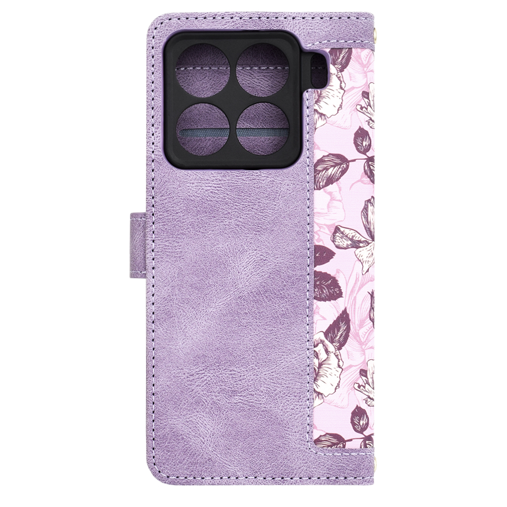 Pouzdro FlipCraft se pyšní sofistikovaným designem, který okamžitě upoutá pozornost. Vnější strana je vyvedena v tajemné fialové barvě s jemnou texturou připomínající broušenou kůži, která dodává pouzdru luxusní vzhled a příjemný pocit na dotek. Vnitřní strana flipového krytu odhaluje nádherný květinový motiv s detailními kresbami růží a motýla, který dodává pouzdru osobitý a elegantní ráz. Precizní prošívání po okrajích podtrhuje kvalitní zpracování a zvyšuje odolnost pouzdra.