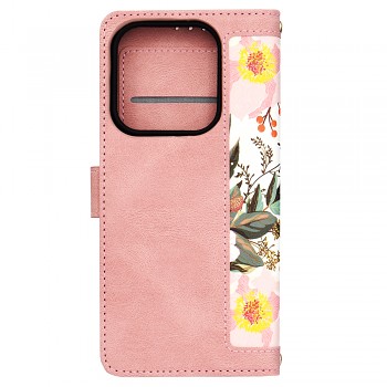 Pouzdro Techsuit FlipCraft se pyšní promyšleným designem, který spojuje estetiku s praktičností. Vnější strana je vyrobena z příjemného materiálu imitujícího kůži v jemné růžové barvě, doplněné precizním prošíváním, které podtrhuje jeho kvalitu. Vnitřní strana flipového krytu a dekorativní pruh na zadní straně jsou zdobeny nádherným květinovým vzorem, který dodává pouzdru jedinečný a svěží vzhled.