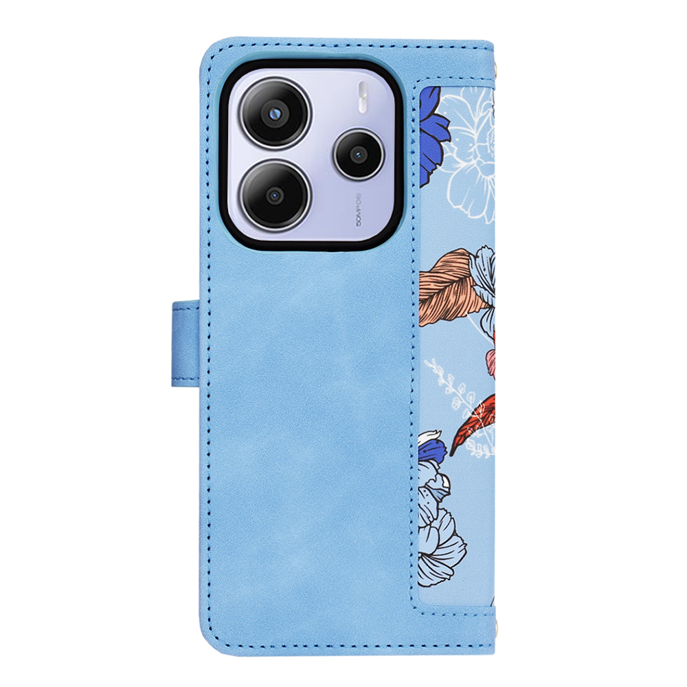 Pouzdro Techsuit FlipCraft se pyšní atraktivním designem, který okamžitě upoutá pozornost. Vnější strana pouzdra je vyvedena v příjemné, světle modré barvě, kterou doplňuje jemný květinový vzor v odstínech modré, bílé a oranžové. Tento vzor dodává pouzdru svěží a elegantní vzhled. Pouzdro je typu "flip", což znamená, že chrání jak zadní stranu, tak i displej telefonu. Vnitřní strana pouzdra, která přichází do kontaktu s telefonem, je vyrobena z hladkého materiálu v jednotné modré barvě, což zajišťuje šetrné zacházení s displejem. Integrované přihrádky na karty a bankovky zvyšují praktičnost pouzdra, zatímco magnetické zavírání a odnímatelné poutko na zápěstí zajišťují bezpečné a pohodlné nošení.