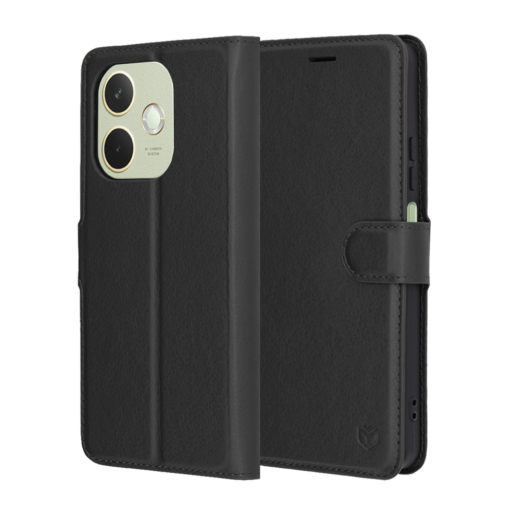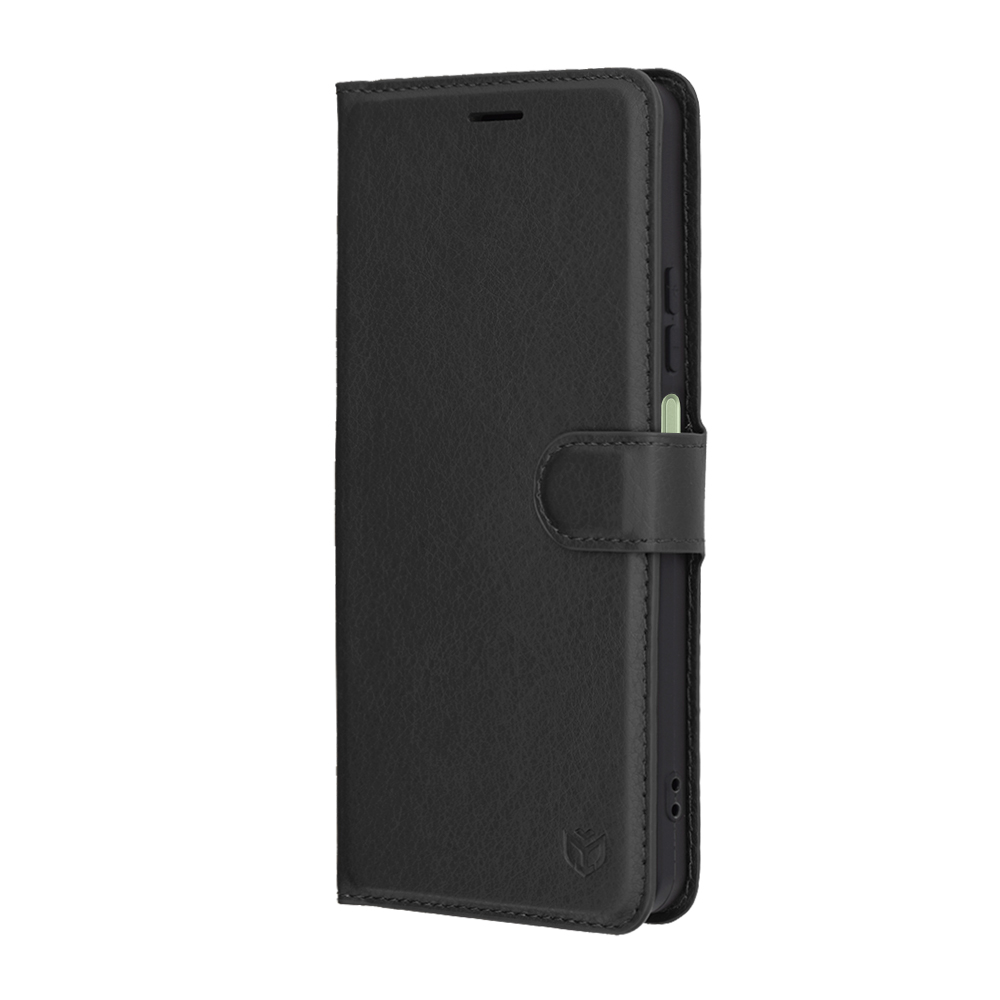 Pouzdro Techsuit Leather Folio se pyšní nadčasovým designem v elegantní černé barvě s jemnou texturou, která imituje pravou kůži a dodává mu luxusní vzhled. Jedná se o typ "folio" pouzdra, které poskytuje komplexní ochranu celého telefonu, včetně displeje. Uzavírání je řešeno pomocí praktické magnetické přezky, která drží pouzdro bezpečně zavřené. Uvnitř pouzdra naleznete integrované sloty pro platební karty (minimálně tři) a větší kapsu na bankovky či doklady, což z něj činí ideálního společníka pro každodenní nošení. Telefon je pevně uchycen v pružné vnitřní vaničce z TPU materiálu, která absorbuje nárazy a chrání hrany zařízení. Díky promyšlené konstrukci lze pouzdro snadno složit do praktického stojánku, ideálního pro sledování videí nebo videohovory. Všechny výřezy pro fotoaparát, reproduktory, nabíjecí port a tlačítka jsou precizně zpracované, což zajišťuje plnou funkčnost telefonu bez nutnosti vyjímání z pouzdra.
