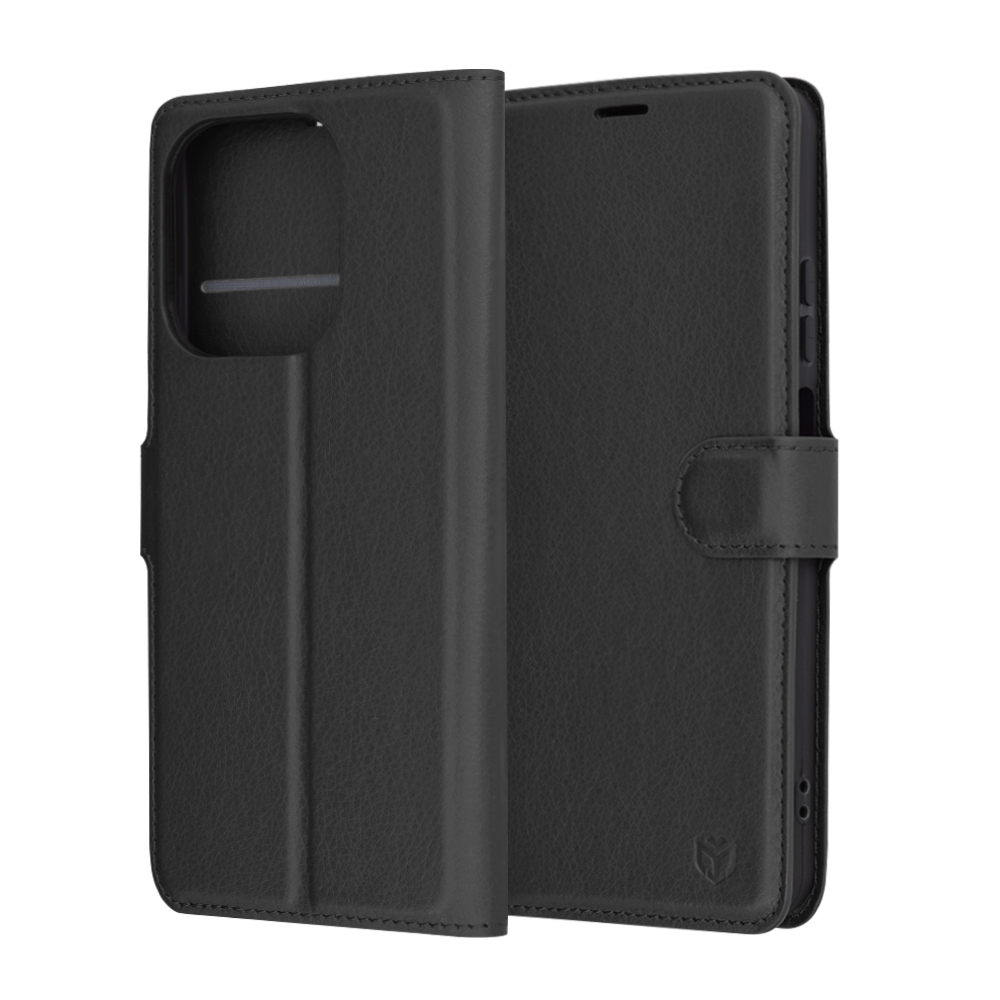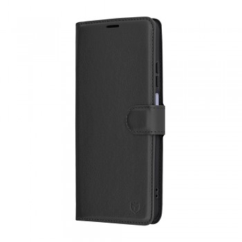 Pouzdro Techsuit Leather Folio se pyšní nadčasovým designem v elegantní černé barvě. Je vyrobeno z kvalitní umělé kůže s jemnou texturou, která je příjemná na dotek a zároveň odolná proti poškrábání a oděrkám. Jeho folio provedení chrání telefon ze všech stran, včetně displeje, díky přednímu krytu. Praktické magnetické zavírání zajišťuje, že pouzdro zůstane bezpečně zavřené. Uvnitř pouzdra naleznete tři sloty na platební karty a jednu větší přihrádku na bankovky, což z něj činí ideálního společníka pro každodenní nošení. Díky promyšlené konstrukci lze pouzdro snadno složit do praktického stojánku pro pohodlné sledování videí či prohlížení obsahu. Všechny výřezy pro konektory, mikrofony, reproduktory a fotoaparáty jsou precizně zpracované, což zaručuje plnou funkčnost telefonu bez omezení.