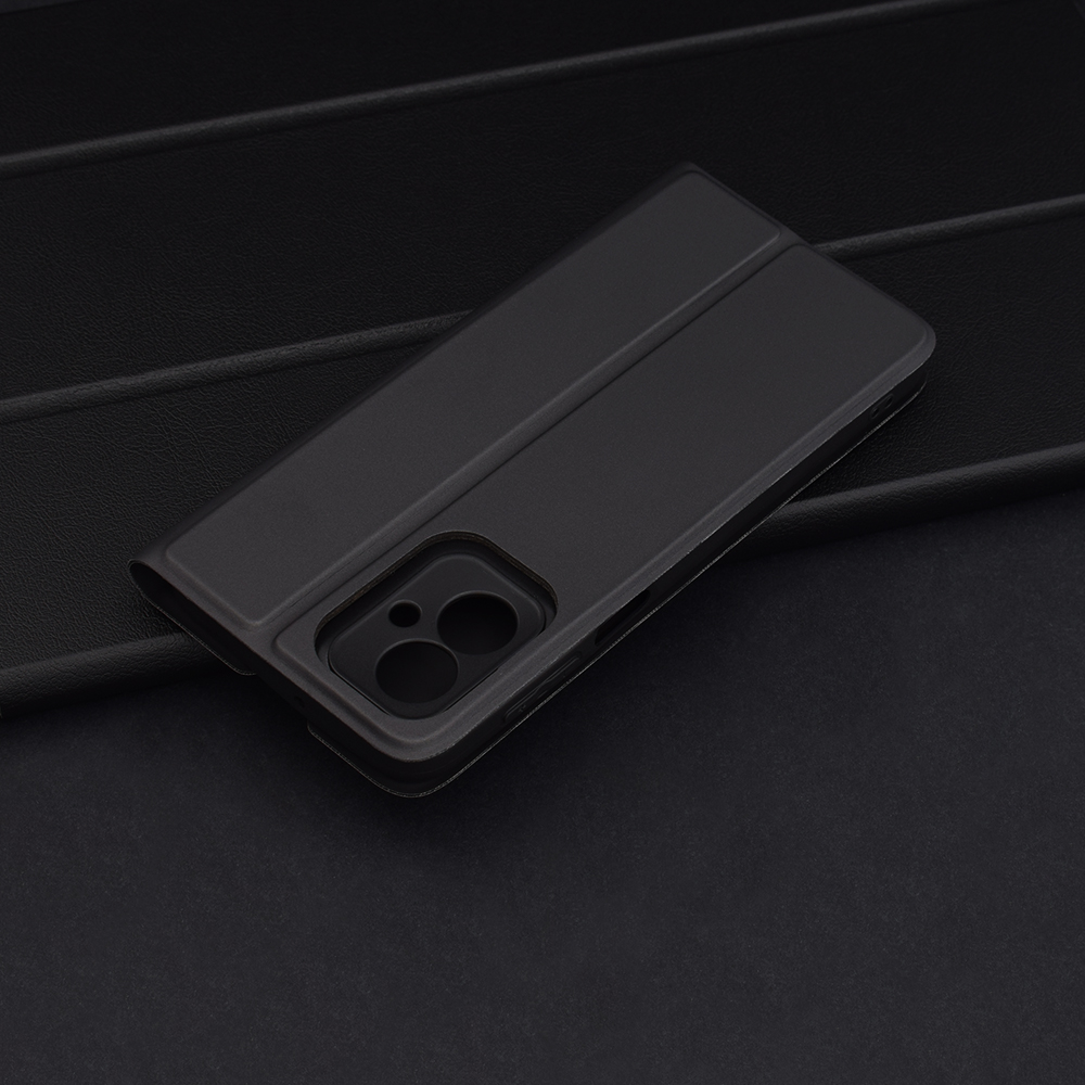 Pouzdro Techsuit Magskin Book se pyšní minimalistickým a sofistikovaným designem. Jeho matný povrch v elegantní černé barvě dodává telefonu prémiový vzhled a příjemný pocit na dotek. Díky preciznímu zpracování jsou všechny výřezy pro konektory, mikrofony, reproduktory a fotoaparáty dokonale přesné, což zajišťuje neomezenou funkčnost vašeho zařízení. Tlačítka si zachovávají jistý stisk a přístup k nabíjecímu portu je vždy bezproblémový. Na přední straně pouzdra je decentně vyraženo logo Techsuit, které podtrhuje jeho originalitu a kvalitu.