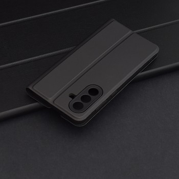 Pouzdro Techsuit Magskin Book se pyšní minimalistickým a sofistikovaným designem s matným černým povrchem, který je příjemný na dotek a odolný proti otiskům prstů. Jedná se o praktické flipové pouzdro, které chrání displej i zadní stranu telefonu. Díky precizním výřezům pro fotoaparát, konektory a reproduktory je zajištěna plná funkčnost vašeho zařízení bez nutnosti pouzdro sundávat. Tlačítka si zachovávají jistý stisk a přístup k nabíjecímu portu je vždy bezproblémový. Integrovaná magnetická spona zajišťuje bezpečné uzavření pouzdra a chrání displej před poškrábáním. Vnitřní strana flipu navíc nabízí praktickou přihrádku pro platební kartu nebo vizitku. Pouzdro lze také snadno složit do praktického stojánku, což oceníte při sledování videí nebo videohovorech.