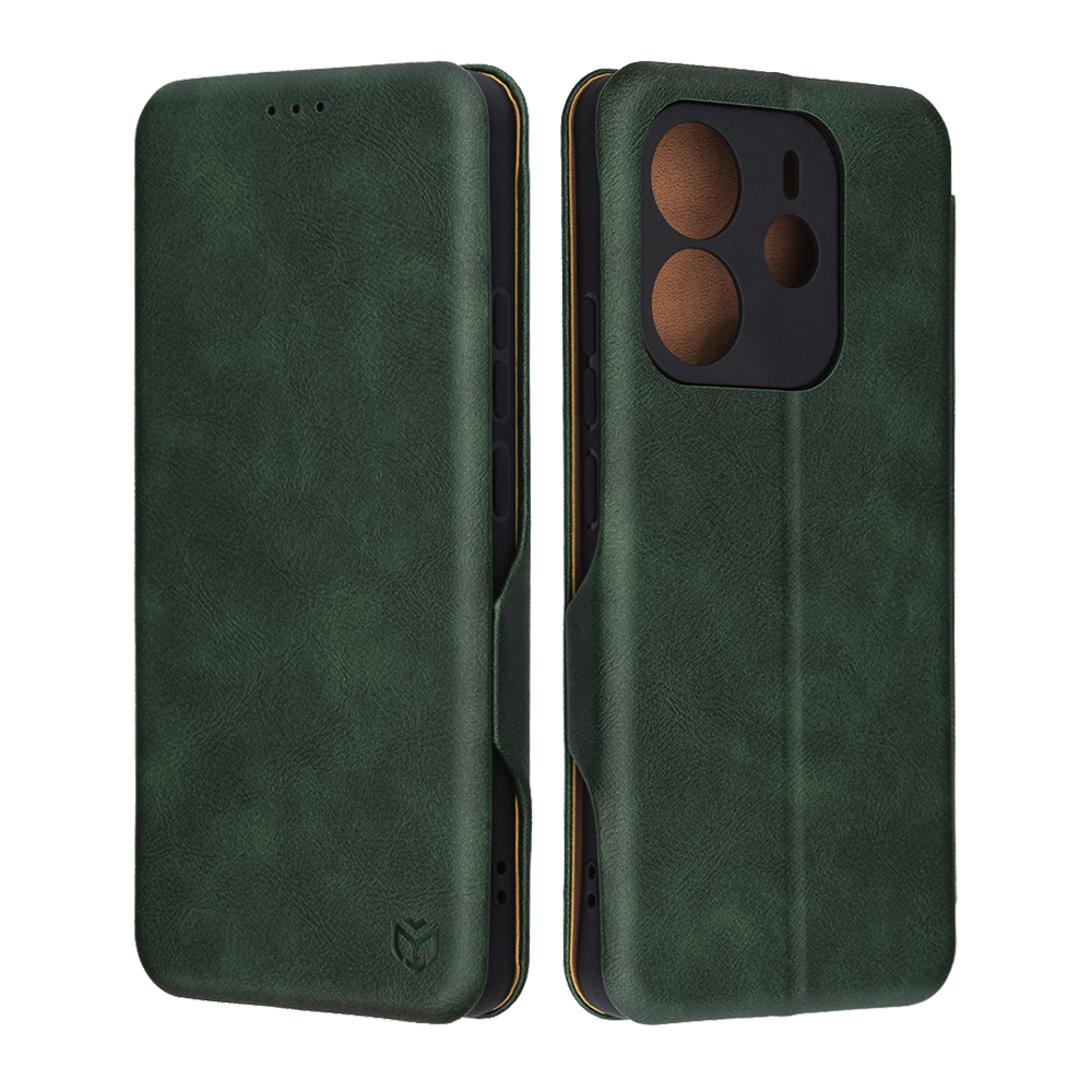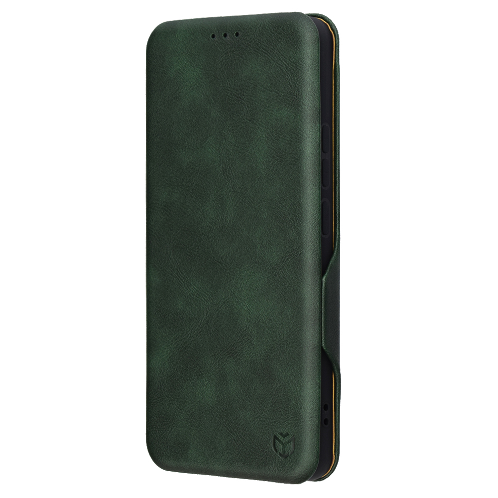 Pouzdro se pyšní sytě zelenou barvou s jemně texturovaným povrchem, který připomíná broušenou kůži a dodává mu luxusní, lehce vintage vzhled. Vnitřní strana předního flipu je vyvedena v kontrastním světle hnědém odstínu a nabízí praktické přihrádky na karty, takže budete mít vždy po ruce to nejdůležitější. Díky integrované funkci stojánku můžete telefon snadno postavit do horizontální polohy pro pohodlné sledování videí či videohovory. Precizní výřezy pro fotoaparát, konektory a reproduktory zajišťují plnou funkčnost telefonu bez nutnosti vyjímání z pouzdra. Magnetické zavírání spolehlivě drží pouzdro zavřené a chrání displej před poškrábáním. Decentní logo Techsuit na přední straně podtrhuje kvalitu a originalitu produktu.