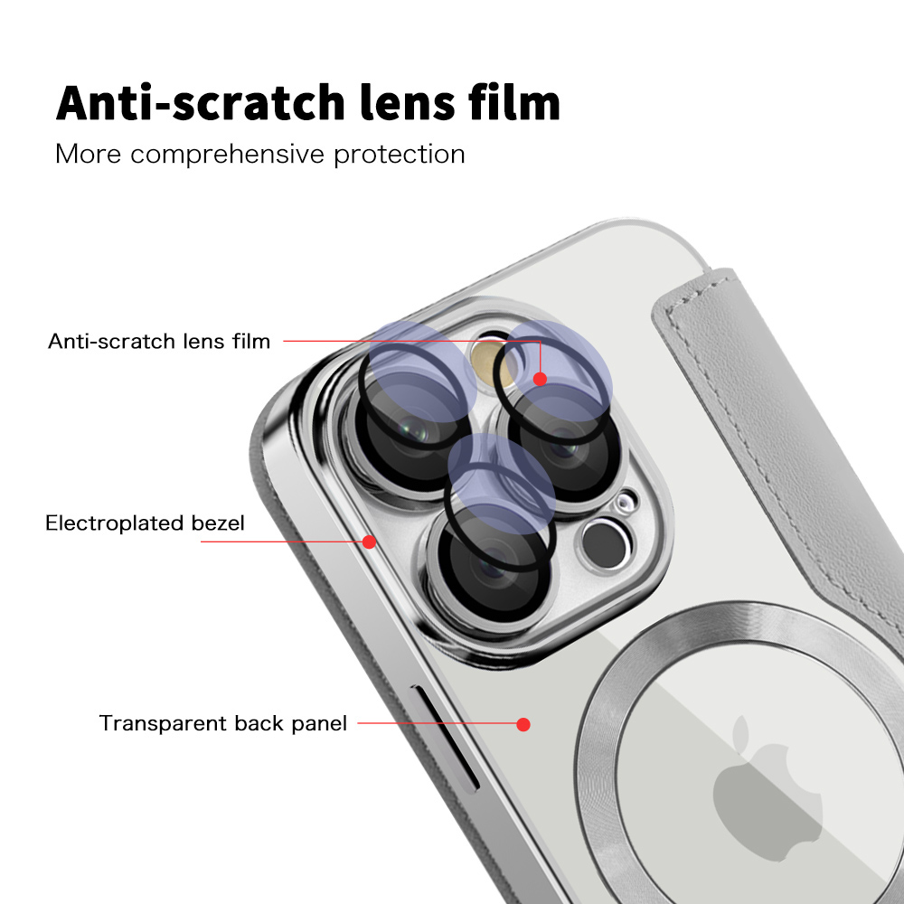 Samotný telefon je usazen v transparentní vaničce s elegantními stříbrnými okraji, které dokonale ladí s designem iPhone 16 Pro. Zadní strana pouzdra je vybavena výrazným stříbrným kruhem pro MagSafe kompatibilitu, což zajišťuje bezproblémové používání magnetického příslušenství a bezdrátového nabíjení. Okolo modulu fotoaparátu je integrován zvýšený stříbrný rámeček, který poskytuje dodatečnou ochranu citlivým čočkám. Všechny výřezy pro konektory, mikrofony a reproduktory jsou precizně zpracované a tlačítka mají jistý stisk, což zaručuje plnou funkčnost telefonu bez omezení.