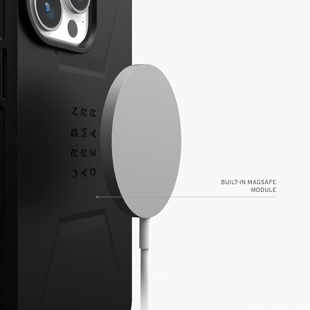Pouzdro Essential Armor MagSafe se vyznačuje robustním, avšak minimalistickým designem, který je okamžitě rozpoznatelný jako produkt UAG. Jeho konstrukce kombinuje tvrdou vnější skořepinu s měkkým, nárazy pohlcujícím jádrem, což zajišťuje vynikající odolnost proti pádům. Zadní strana pouzdra je matně černá s decentním, vertikálním nápisem "URBAN ARMOR GEAR" a výraznými, ale elegantními liniemi, které dodávají pouzdru moderní industriální vzhled. Integrovaný MagSafe modul zajišťuje bezproblémovou kompatibilitu s MagSafe příslušenstvím a rychlé bezdrátové nabíjení. Přesné výřezy pro fotoaparát a porty, spolu s nadrozměrnými hmatovými tlačítky, zaručují plnou funkčnost a pohodlné ovládání. I přes svou odolnost je pouzdro překvapivě lehké a nezatěžuje váš telefon.