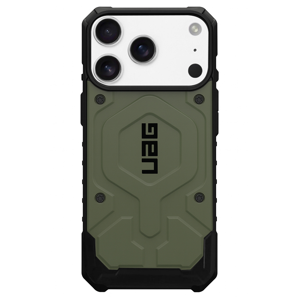 Pouzdro UAG Pathfinder MagSafe je okamžitě rozpoznatelné díky svému patentovanému, industriálnímu designu, který kombinuje tvrdou vnější skořepinu z polykarbonátu s měkkým, nárazy pohlcujícím jádrem z TPU. I přes svůj robustní vzhled je překvapivě lehké, což zajišťuje komfortní používání. Olivově zelená barva s černými akcenty dodává pouzdru moderní a zároveň odolný vzhled.