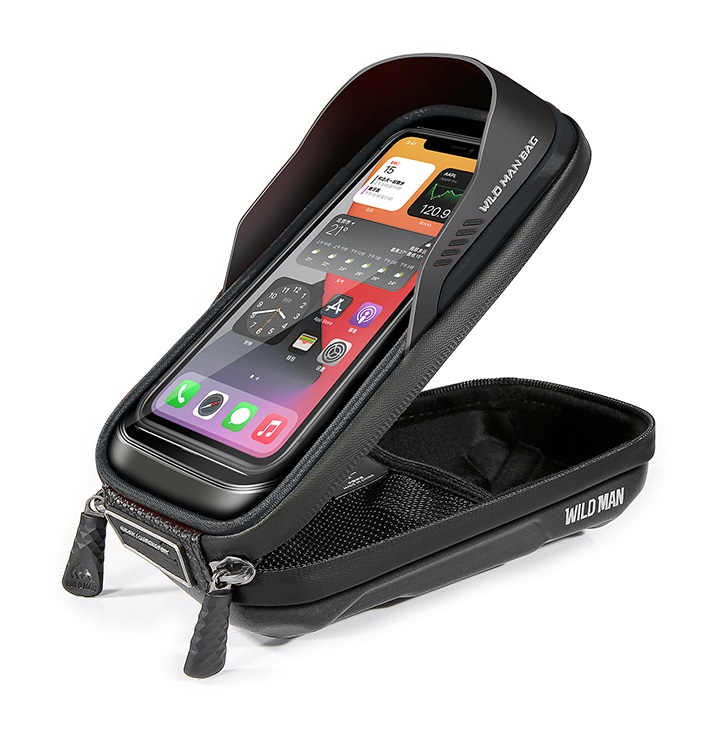 Brašna má jednu hlavní kapsu určenou pro mobilní telefon, který je v pouzdře upevněn pomocí suchého zipu. Část chránící dotykovou plochu telefonu nesnižuje citlivost displeje, což umožňuje ovládat telefon přímo v obalu nebo bez problému sledovat navigaci během jízdy.