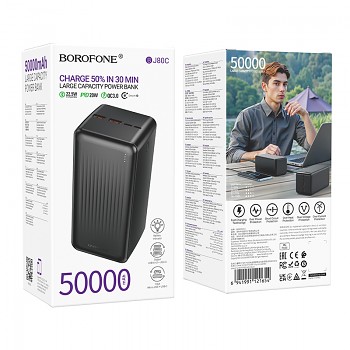 Objevte sílu a styl s Powerbankou Borofone BJ80C Clever! Tato výkonná a všestranná přenosná baterie s kapacitou 50000mAh je ideálním společníkem pro všechny vaše elektronické zařízení. Ať už jste na cestách, v kanceláři nebo doma, nikdy nebudete muset mít obavy o vybitou baterii!