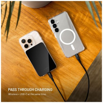 - Nabíjení dvou zařízení současně – bezdrátově a přes USB-C port.