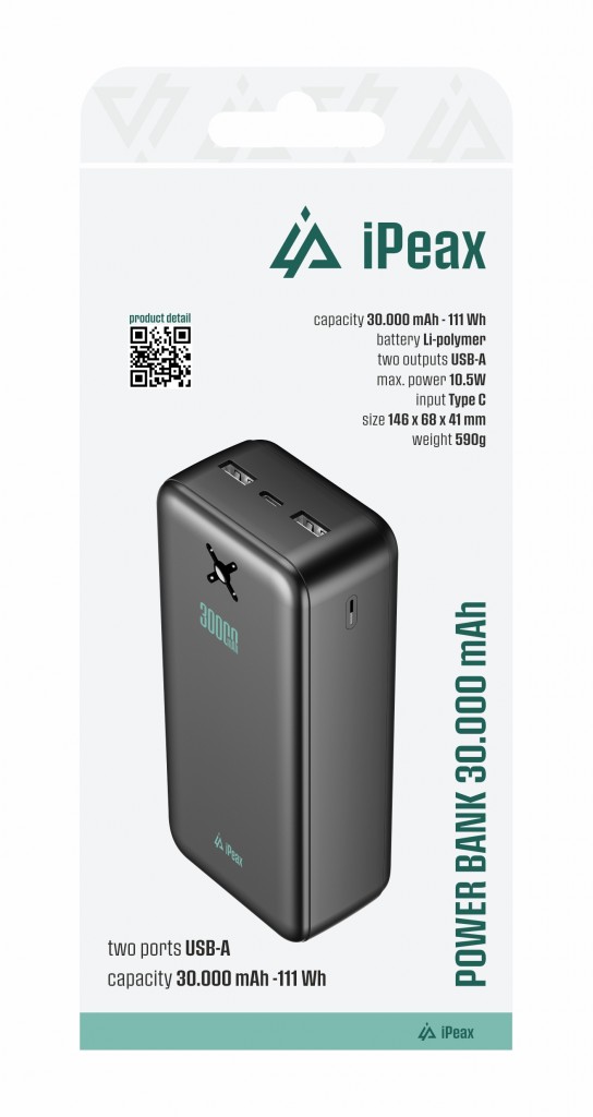 Objevte sílu a spolehlivost s powerbankou iPeax! Tato elegantní černá powerbanka s kapacitou 30 000 mAh je ideálním společníkem pro všechny, kdo chtějí zůstat připojeni, ať už jste na cestách, na dovolené nebo v kanceláři. S její pomocí už nikdy nebudete muset řešit vybitou baterii!