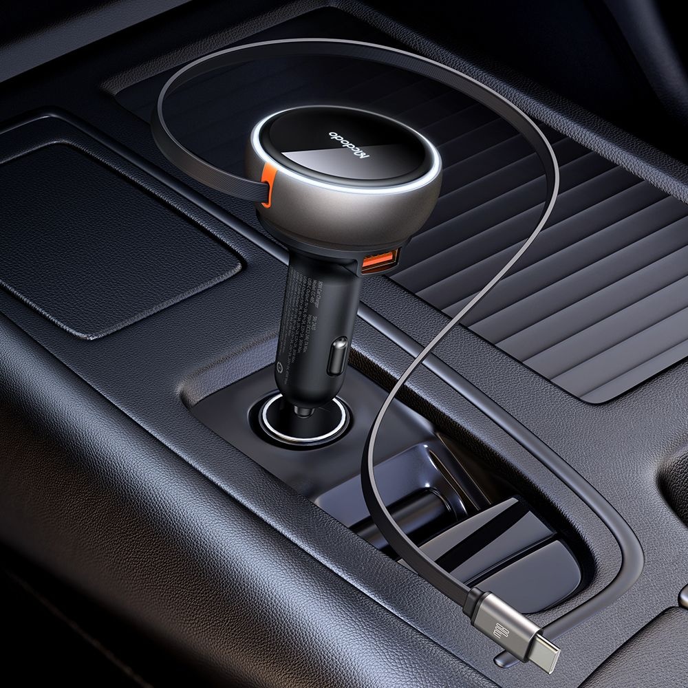 Mcdodo – nabíječka do auta (CC-4850) – s výsuvným kabelem USB-C, 80W, duální port, světelný indikační kroužek, 80cm – černáUžijte si bezstarostné cestování s Mcdodo nabíječkou do auta CC-4850, která je navržena pro maximální pohodlí a efektivitu. Tento elegantní a výkonný společník do vašeho vozu zajistí, že vaše zařízení budou vždy plně nabitá, ať už jste kdekoli.