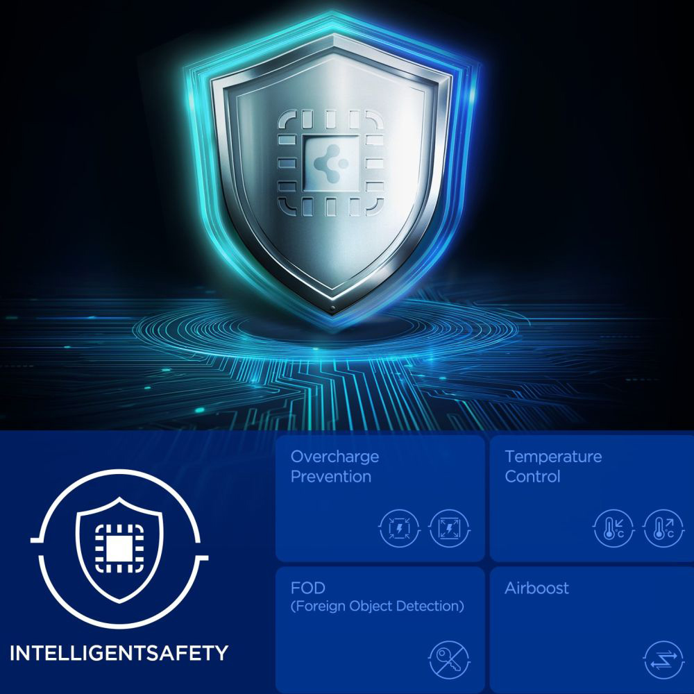 Držák Spigen Essential se pyšní moderním a minimalistickým designem v černé barvě, který se dokonale hodí do interiéru každého vozu. Kruhová nabíjecí plocha s decentním logem Spigen a viditelnými chladicími průduchy dodává produktu prémiový vzhled. Díky robustnímu klipu s háčkem je instalace do ventilační mřížky rychlá a intuitivní, zatímco nastavitelné nohy zajišťují optimální stabilitu a kompatibilitu s různými typy mřížek.