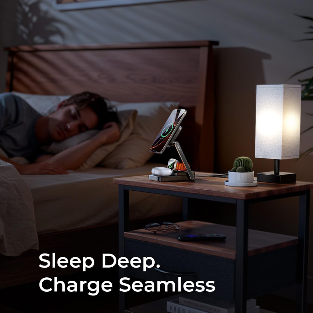 Lisen - nabíjecí stanice 3v1 (YL0424010003) - se síťovým adaptérem, pro telefon, AirPods a Apple Watch, 15W, skládací - černáUž vás nebaví hledat každou noc tři různé nabíječky a rozmotávat klubko kabelů? Představujeme vám elegantní řešení pro všechny vaše zařízení – skládací nabíjecí stanici Lisen 3v1. Nabíjejte svůj telefon, sluchátka AirPods a hodinky Apple Watch současně, rychle a na jednom místě.