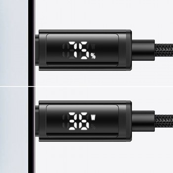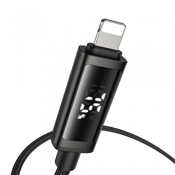 Kabel Mcdodo CA-7990 se pyšní prémiovým designem a konstrukcí. Je opletený odolným nylonem, který zajišťuje jeho dlouhou životnost a odolnost proti zamotání a opotřebení. Koncovky jsou vyrobeny z hliníkové slitiny, což zaručuje jejich pevnost a spolehlivost. Nejvýraznějším prvkem je však integrovaný duální LED displej přímo na Lightning konektoru. Ten vám v reálném čase zobrazuje aktuální nabíjecí výkon ve Wattech (W) a procentuální stav nabití baterie vašeho zařízení, což přináší zcela novou úroveň kontroly nad nabíjením.