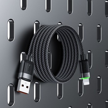 Kabel Mcdodo Self-Winding Series (CA-6000) se pyšní samonavíjecím designem, který využívá magnetickou technologii pro úhledné a bezpečné srolování. Díky tomu se kabel nezamotá a je vždy připraven k použití. Jeho povrch je tvořen odolným opletením v černé barvě, které zajišťuje dlouhou životnost a odolnost proti opotřebení. Konektor Lightning je vybaven praktickou zelenou LED indikací, která signalizuje stav nabíjení. Robustní koncovky s texturovaným povrchem pak zaručují pevné uchopení a snadnou manipulaci.