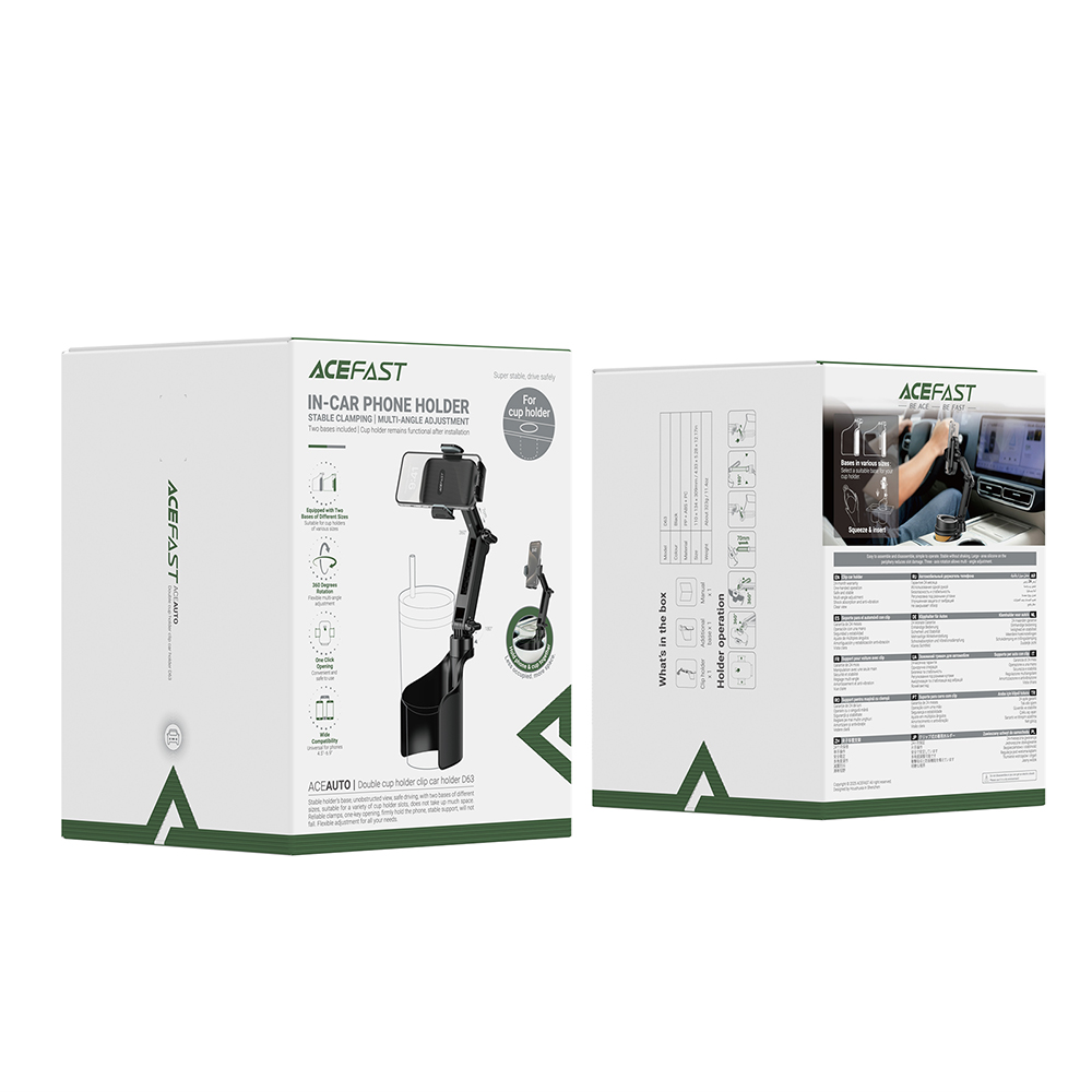 Acefast - Držák do auta (D63) - pevné čelisti, univerzální - černýDesign: Univerzální držák do auta se pyšní masivními upínacími kleštěmi a ohebným ramenem, které nabízí nebývalou flexibilitu úhlu pohledu. Povrch drží telefon bezpečně a tlačítko pro okamžité uvolnění čelistí usnadní práci obsluhy jednou rukou.