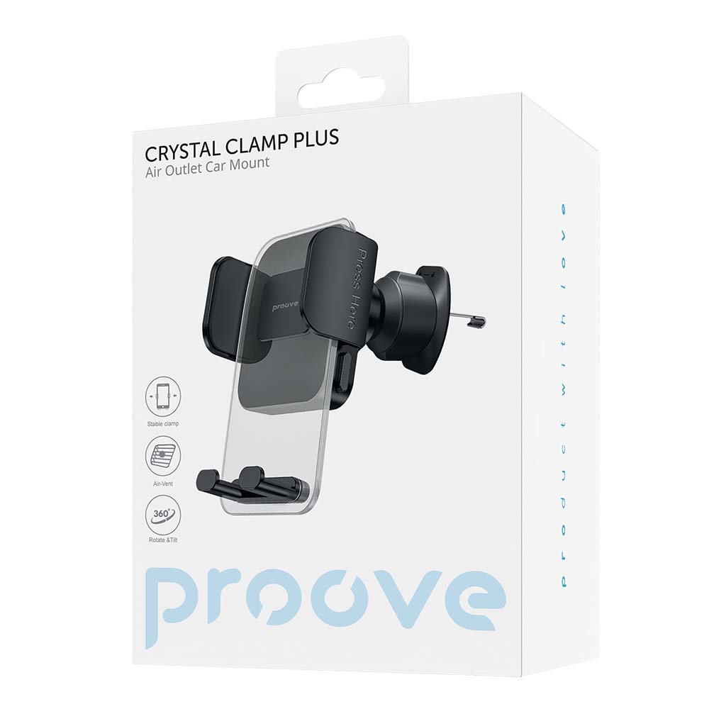 Proove - držák do auta Crystal Clamp Plus (CHCCP0000001) - do mřížky ventilace, mechanická svorka, bezpečné uchycení, pro telefony 4,7-6,9" - černáPrávě probíhá akce, kdy je dopravné od dvou kusů zboží v objednávce zdarma.