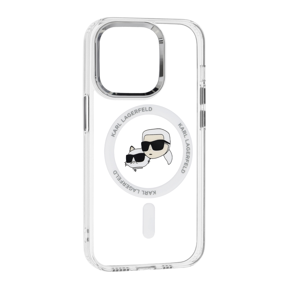 Karl Lagerfeld - Kryt IML MagSafe (KLHMP14LHLSKCH) - iPhone 14 Pro - Bílá (Kovový Karl & Choupette)Design tohoto stylového skvostu oslní luxusní bílou zadní stranou se dvěma naprosto ikonickými metalickými prvky - hlavičkami mistra Karla a jeho legendární kočky Choupette. Neokoukaná a moderní grafika tvoří neopakovatelný vjem z vašeho iPhonu.