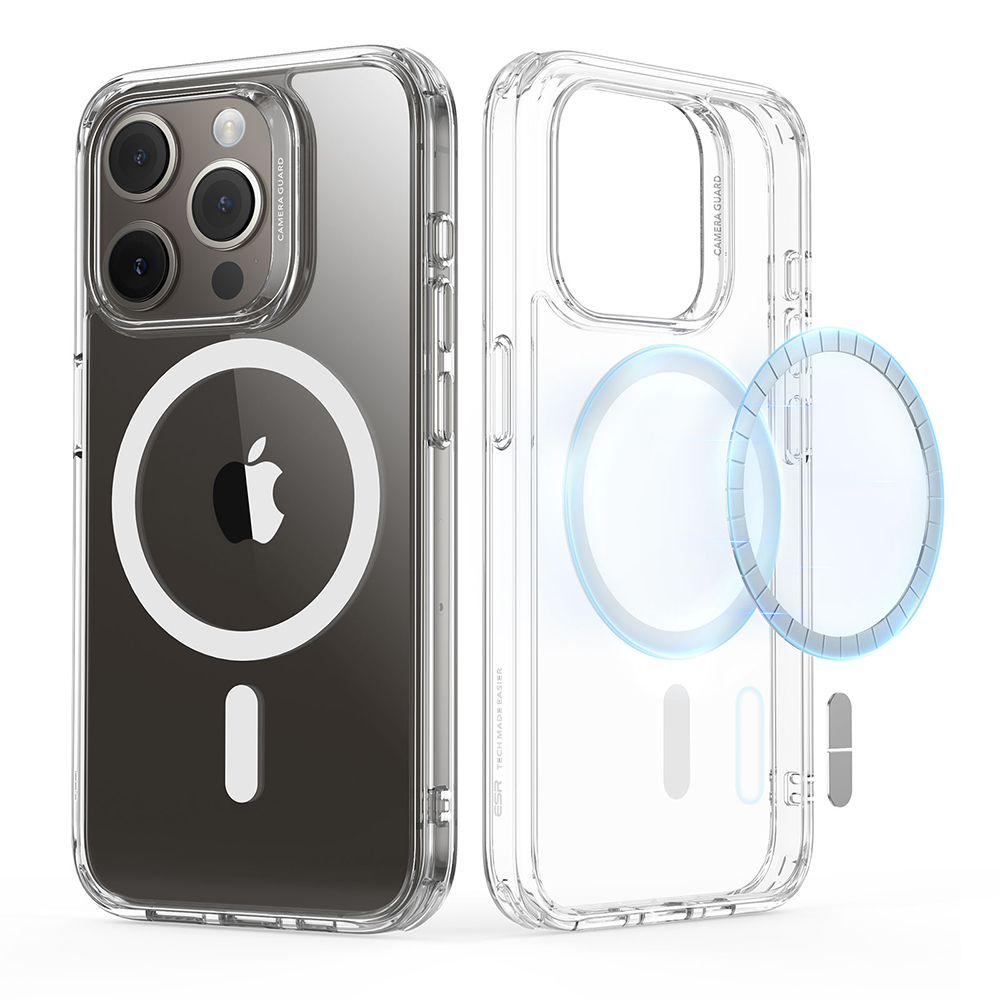 Tento kryt se pyšní křišťálově čistým designem, který nechá vyniknout originální krásu a barvu vašeho iPhone 15 Pro Max. Je navržen s precizními výřezy pro všechny porty, tlačítka a reproduktory, což zajišťuje bezproblémové používání. Na zadní straně je elegantně integrován výrazný bílý kroužek HaloLock™, který nejen podtrhuje minimalistický vzhled, ale také zaručuje bezpečné a stabilní připojení k veškerému MagSafe příslušenství. Zesílené rohy a zvýšené okraje kolem modulu fotoaparátu s nápisem "Camera Guard" poskytují vojenskou ochranu proti pádům a chrání objektivy před poškrábáním.