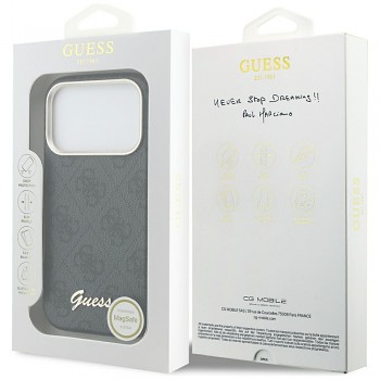 Guess - Kryt 4G Script MagSafe (GUHMP17X5P4FWMSK) - iPhone 17 Pro Max - ČernáDesign tohoto kousku zosobňuje naprostou černou eleganci s puncem luxusu. Stylový reliéf 4G v tmavém zpracování společně se zlatavým podpisem evokuje tajemnou atmosféru večerního města a dokonalého luxusu.