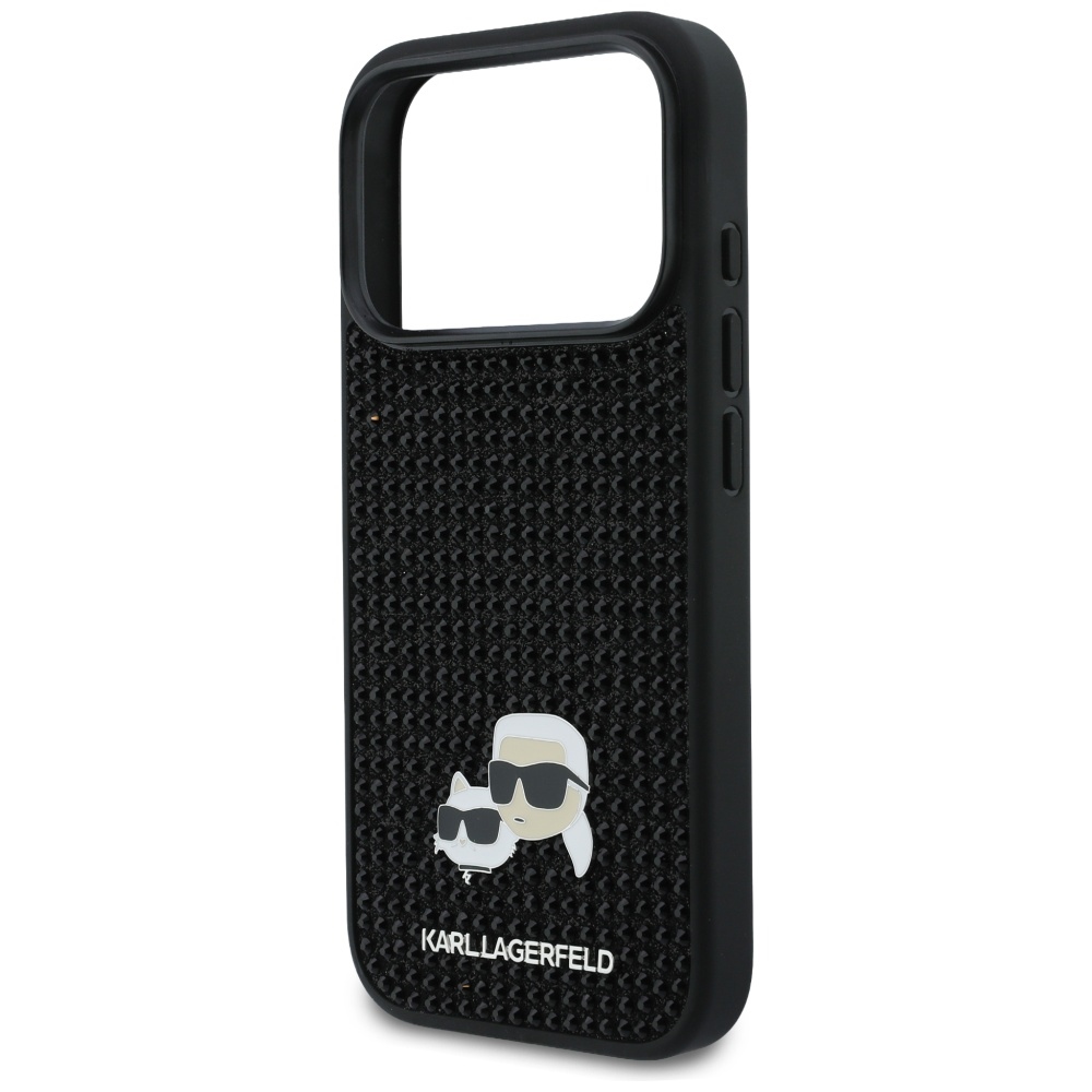 Karl Lagerfeld - Pevný kryt Rhinestone with K&C Pin () - iPhone 17 Pro Max - ČernáExkluzivní zadní kryt vyzdobený oslnivými třpytivými kamínky (Rhinestone) přitahuje veškerou pozornost. Třešničkou na dortu designu je nádherný kovový pin s iniciálami návrháře a jeho slavné kočky Choupette.
