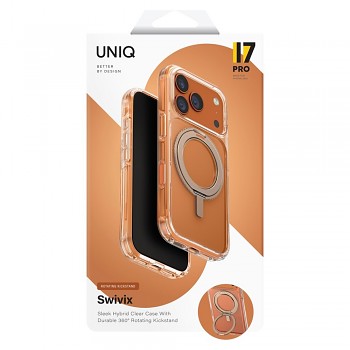 Kryt UNIQ Swivix 360° Kickstand iPhone 17 Pro Max zlatýTento kryt spojuje nenápadnou ochranu s vysokou funkčností. Jeho klíčovým prvkem je integrovaný otočný stojánek o 360°, který je vkusně zasazen do zadní části v odstínu zlatá, aniž by narušoval celistvý vzhled.