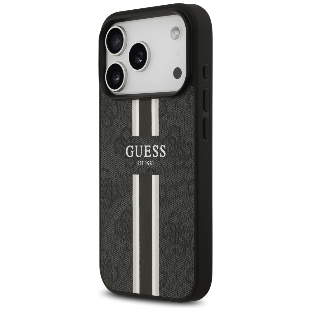 Tento elegantní hardcase v černé barvě se pyšní charakteristickým celoplošným 4G monogramem, který je synonymem pro značku Guess. Design je doplněn o výrazné vertikální pruhy v černé, šedé a bílé barvě, které dodávají pouzdru dynamický a sportovně-elegantní vzhled. Uprostřed zadní strany je umístěno prominentní logo GUESS EST. 1981, které zdůrazňuje autenticitu a dědictví značky. Pouzdro je vyrobeno z odolného materiálu, který poskytuje spolehlivou ochranu proti poškrábání a menším nárazům, zatímco si zachovává štíhlý profil telefonu. Vnitřní strana pouzdra je hladká a obsahuje integrovaný MagSafe kroužek, který zajišťuje perfektní kompatibilitu s MagSafe příslušenstvím a bezdrátovým nabíjením. Přesné výřezy pro fotoaparát, tlačítka a porty zaručují plnou funkčnost a snadný přístup ke všem ovládacím prvkům vašeho telefonu.
