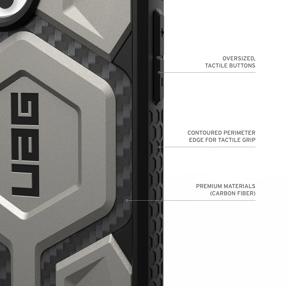 Každý detail je navržen pro maximální funkčnost. Kryt disponuje pěti vrstvami ochrany a využívá prémiové materiály, jako je DuPont™ Kevlar®, který zajišťuje bezkonkurenční pevnost. Nadrozměrná, hmatová tlačítka poskytují vynikající odezvu a snadné ovládání, zatímco protiskluzové úchopy po obvodu zajišťují bezpečné držení telefonu v každé situaci. Zvýšený okraj kolem fotoaparátu poskytuje zvýšenou ochranu objektivů, a zesílené rohy efektivně absorbují nárazy při pádech. Vnitřní strana krytu je opatřena hexagonálním vzorem pro ještě lepší absorpci otřesů. Samozřejmostí je integrovaný modul MagSafe pro bezproblémové bezdrátové nabíjení a připojení příslušenství.