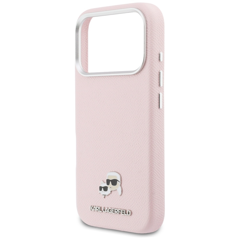 Karl Lagerfeld - pevné kožené pouzdro K&C Head Pin MagSafe (KLHMP17L6PFKCLP) pro iPhone 17 Pro - růžováPrávě probíhá akce, kdy je dopravné od dvou kusů zboží v objednávce zdarma.