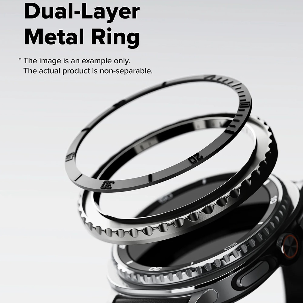 Ringke Premium Bezel Styling je vyroben z vysoce kvalitní nerezové oceli SUS316L, která zaručuje dlouhou životnost a odolnost proti poškrábání a každodennímu opotřebení. Jeho design se vyznačuje dvojitou kovovou vrstvou a precizními detaily, včetně charakteristického zubatého okraje, který dodává hodinkám robustní a zároveň luxusní vzhled. Díky CNC obrábění je zajištěno dokonalé a bezproblémové splynutí s původním designem hodinek, což vytváří dojem, že je rámeček jejich nedílnou součástí. Černá barva dodává hodinkám moderní a univerzální vzhled, který se hodí ke každému stylu.