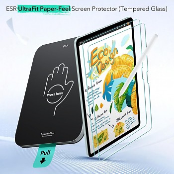 Ochranná fólie ESR - Paper-Feel UltraFit Tray (2 pack) - iPad 10 (2022) 10.9 / 11 (2025) / 12 (2026) PrůhlednáDesign: Jedná se o matnou čirou fólii určenou pro iPad, která po aplikaci naprosto splyne s displejem přístroje. Speciální povrch napodobuje drsnost papíru a efektivně láme odlesky světla.