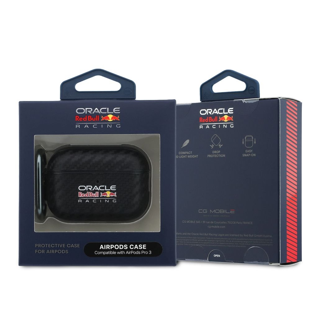 Pouzdro karbonové Red Bull PU pro AirPods Pro 3 černéDesign tohoto pouzdra kombinuje čisté linie a texturu připomínající sportovní materiály. Karbonový povrch působí dynamicky a pevně obepíná pouzdro sluchátek. Na boční straně je integrován úchyt pro kovovou karabinu.