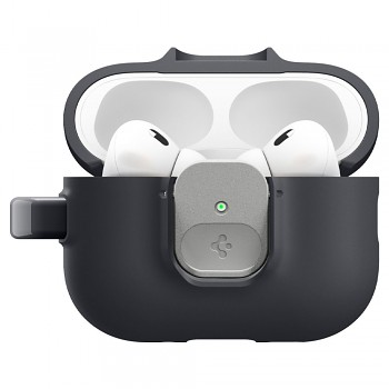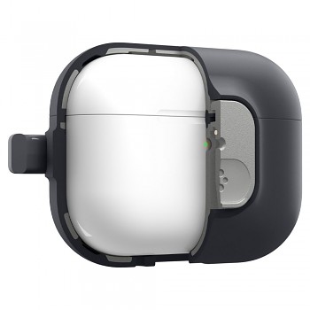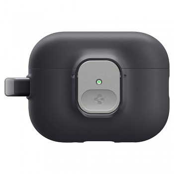 Pouzdro Spigen Nano Pop se vyznačuje svým dvoubarevným designem, který je pro řadu Nano Pop typický. Hlavní tělo pouzdra je v tmavě šedé barvě, připomínající černý sezam, zatímco zadní část s výřezem pro LED indikátor a tlačítko je zvýrazněna světlejším, stříbrným odstínem. Tato kombinace vytváří moderní a hravý vzhled. Pouzdro je vyrobeno z odolného silikonu, který je příjemný na dotek a zároveň poskytuje vynikající ochranu proti pádům, poškrábání a každodennímu opotřebení. Přesné výřezy zajišťují snadný přístup k nabíjecímu portu a nerušené fungování všech funkcí. Součástí balení je také praktická karabina, díky které můžete sluchátka bezpečně připnout k batohu, klíčům nebo poutku na opasek.