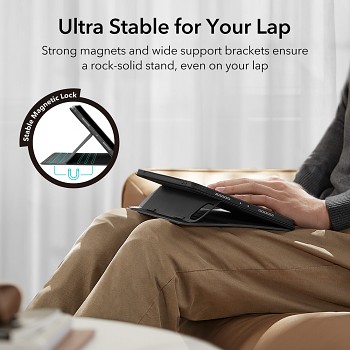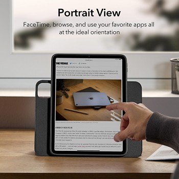 Klíčovou vlastností je odnímatelný magnetický kryt, který umožňuje snadné přizpůsobení pouzdra vašim potřebám. Díky dvěma podpůrným držákům a šesti magnetickým drážkám si můžete vybrat z devíti stabilních úhlů pro sledování (30°-75°) nebo psaní (15°-25°). Silné magnety a široké podpůrné držáky zaručují skalní stabilitu, a to i při používání na klíně. Pouzdro navíc podporuje portrétní zobrazení, ideální pro FaceTime hovory, prohlížení webu a používání oblíbených aplikací. Pro ještě větší komfort lze displej zvýšit o 8,5 cm, což vám poskytne zcela nový pohled na váš iPad. Nechybí ani integrovaný držák pro Apple Pencil a přesné výřezy pro všechny porty a reproduktory.