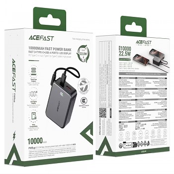 Powerbanka Acefast M28 22.5W 10000mAh černáTento produkt se prezentuje minimalistickým funkčním designem v černé barvě s elegantním integrovaným displejem a pokročilým žebrováním nebo detaily pro efektivní chlazení.