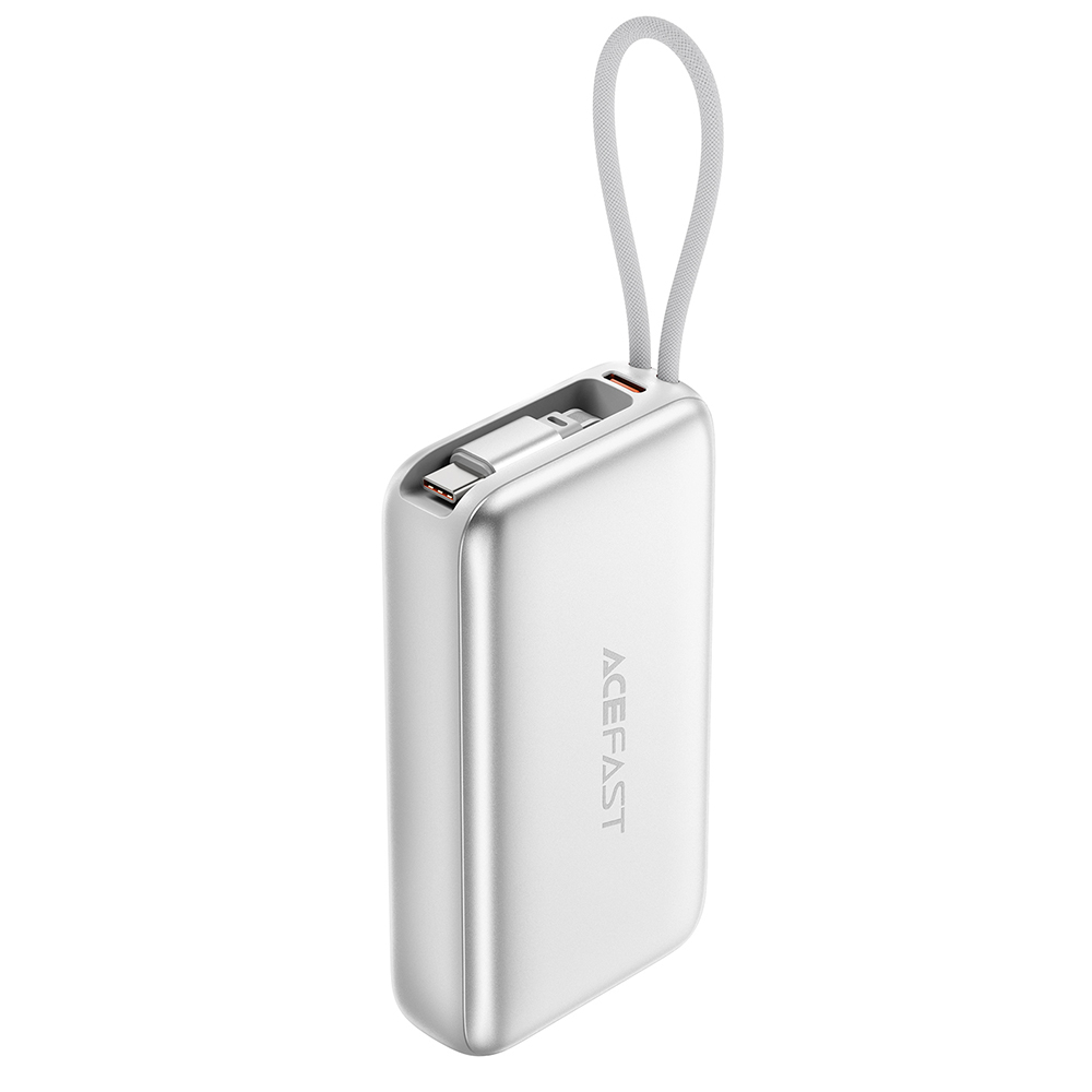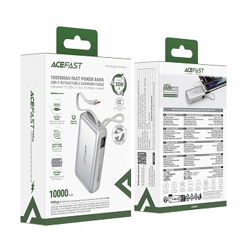 Powerbanka Acefast M32 35W 10000mAh stříbrnáTento produkt se prezentuje kompaktním a elegantním profilem ve stříbrném provedení, do kterého je chytře ukryt teleskopický napájecí kabel, což eliminuje nutnost nosit kabely zvlášť.